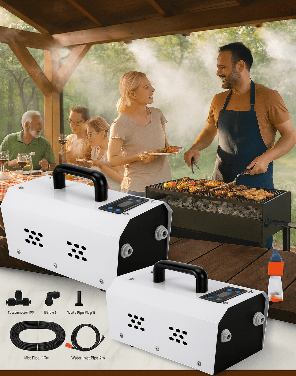 This professional outdoor cooling system helps reduce temperatures by up to 10–15°C, creating a comfortable