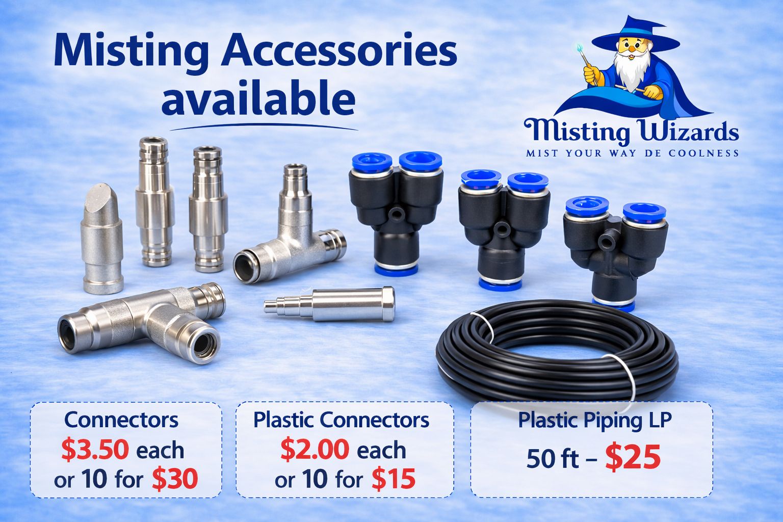 Misting Wizards offers reliable and durable Misting Accessories designed to support efficient outdoor cooling systems. With high-quality materials and easy installation, these components help keep your misting system operating smoothly while providing effective cooling for outdoor environments.