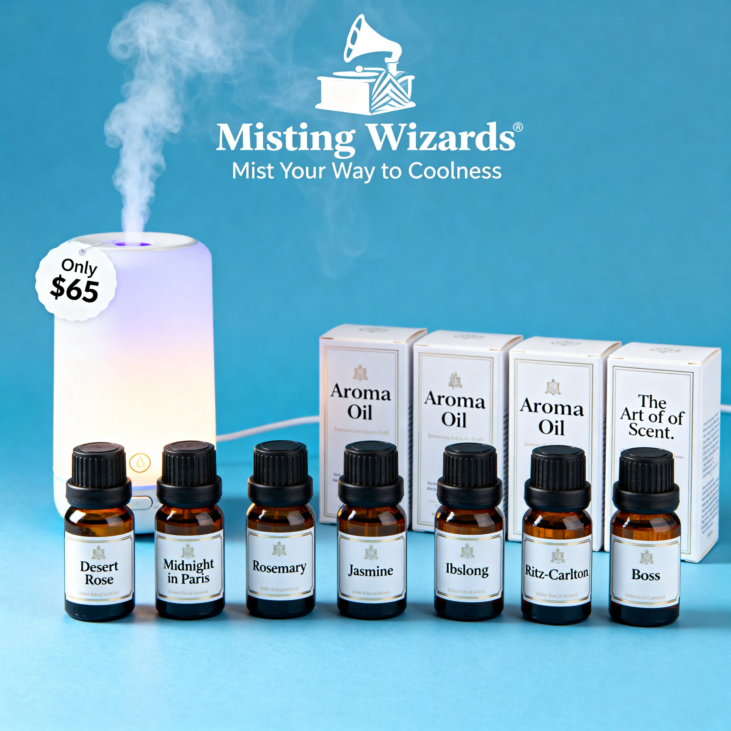 Experience luxury aromatherapy and transform your space today with the Misting Wizards Aroma Oil & Diffuser Set!