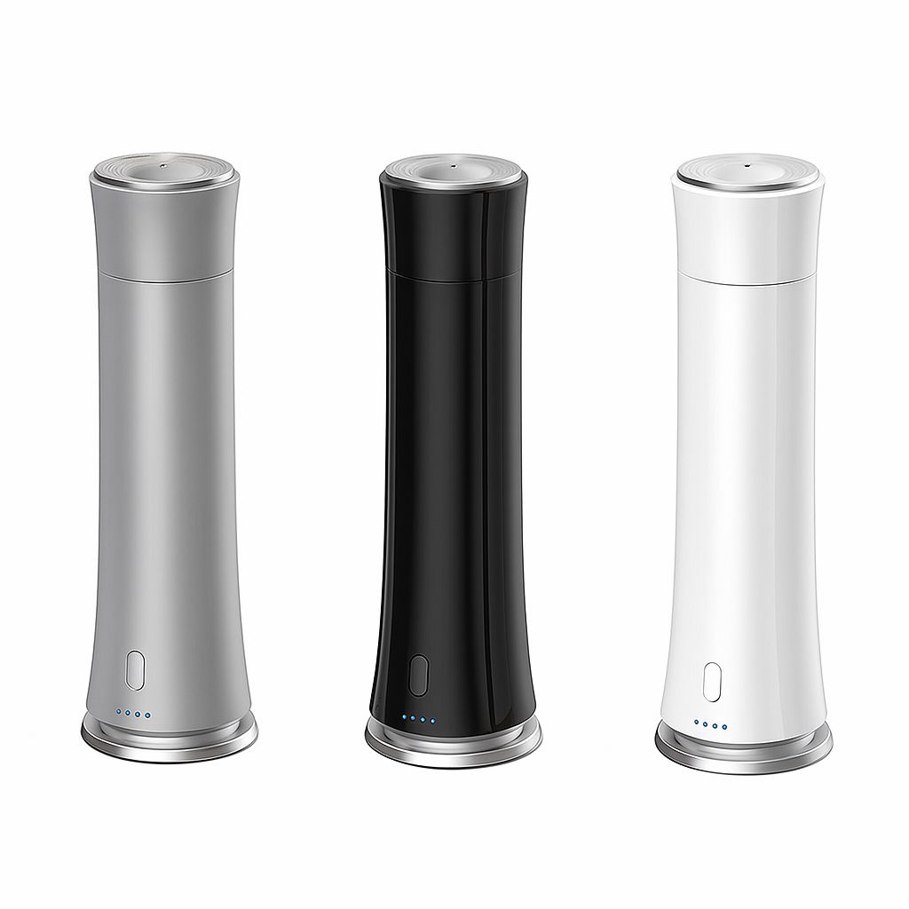Its sleek vertical design makes the RM-108 Luxury Smart Diffuser perfect for desks, bedside tables, countertops, and small living areas while delivering a refined fragrance experience inspired by luxury hotels and spas.